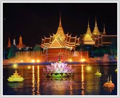 As the moon rises in the evening, small lotus-shaped raft of banana leaves filled with flowers, candle, a snip of your nail, a piece of your hair, and a few coins, is set afloat in the ocean or down a waterway begging good luck for the forthcoming year. The best Kra-Thong must be made of banana leaves or bread so that it would become food for the fish and there would be less pollution. In Chiang Mai, there is releasing the large paper hot-air balloons. It is to symbolise casting away your troubles and calling in the hopes of the future.